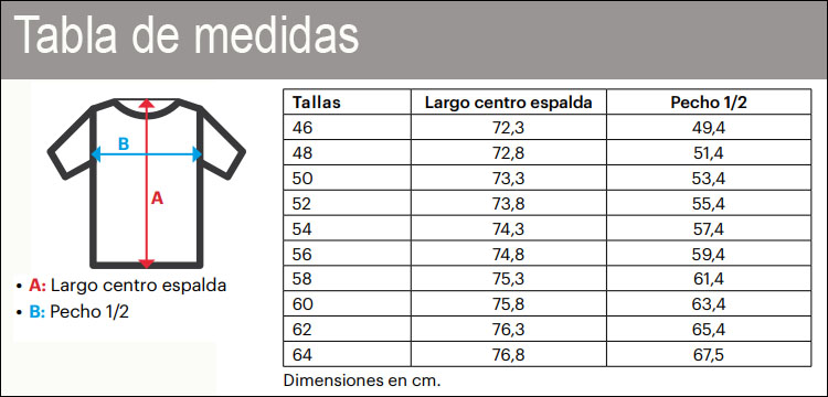 Tallas de la 46 a la 64