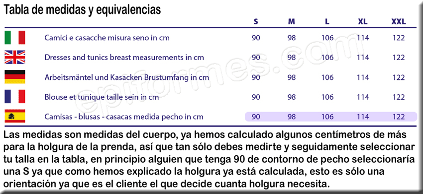 SI QUIERES ACERTAR CON TU TALLA , DEDICALE UNOS SEGUNDOS A ESTA TABLA: