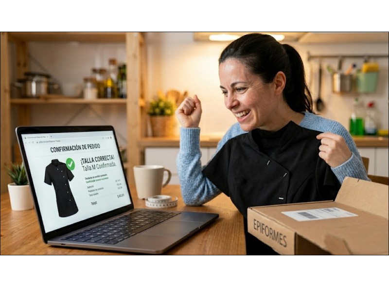 Cuando contactas con nosotros por WhatsApp o teléfono, recibes una solución personalizada. Ellas saben, por ejemplo, si una bata de un fabricante concreto viene larga de mangas o si un pantalón de cocina tiene el tiro especialmente alto. Ese nivel de detalle es el que garantiza que tu pedido llegue y te lo pongas al instante, sin sorpresas.